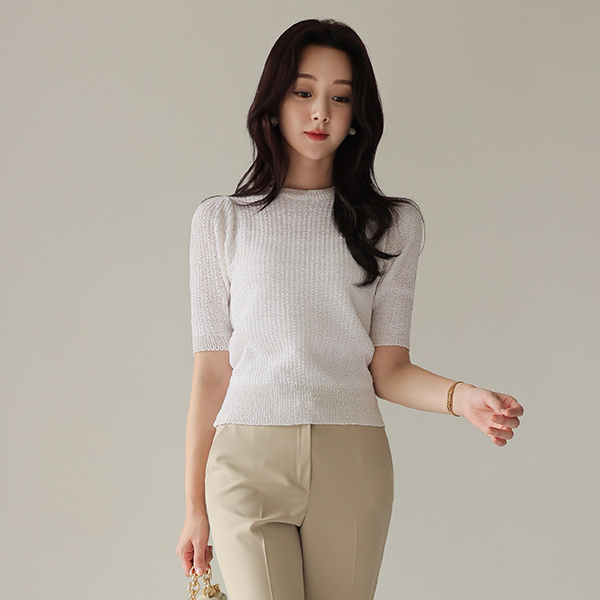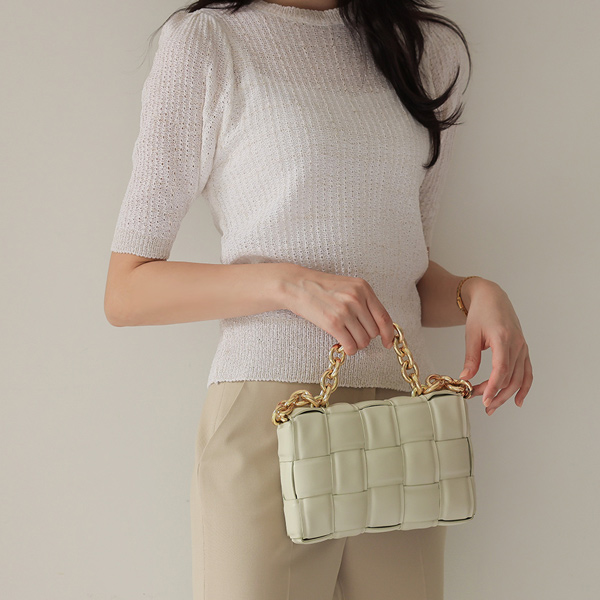 金珍珠 格子 八字纹 编织的 针织t恤