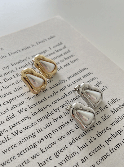 Silver&黄金 波浪 珍珠 耳环