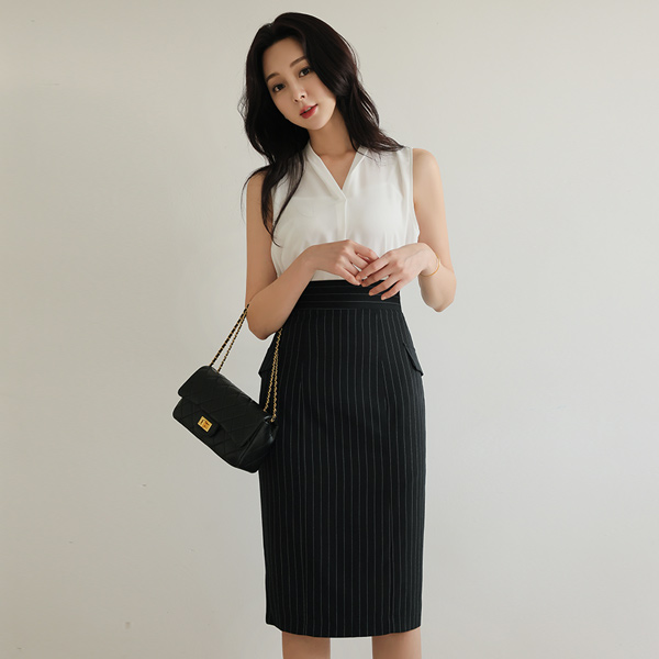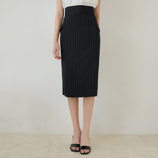 翻盖风格 口袋 装饰 条纹 裙子