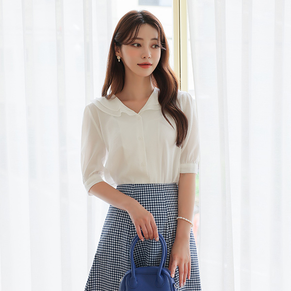 层褶裙 褶裥 平领 丝滑 莫代尔 罩衫