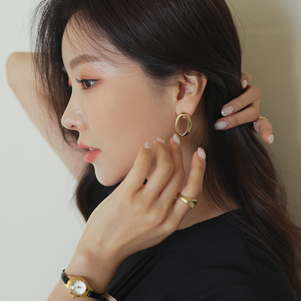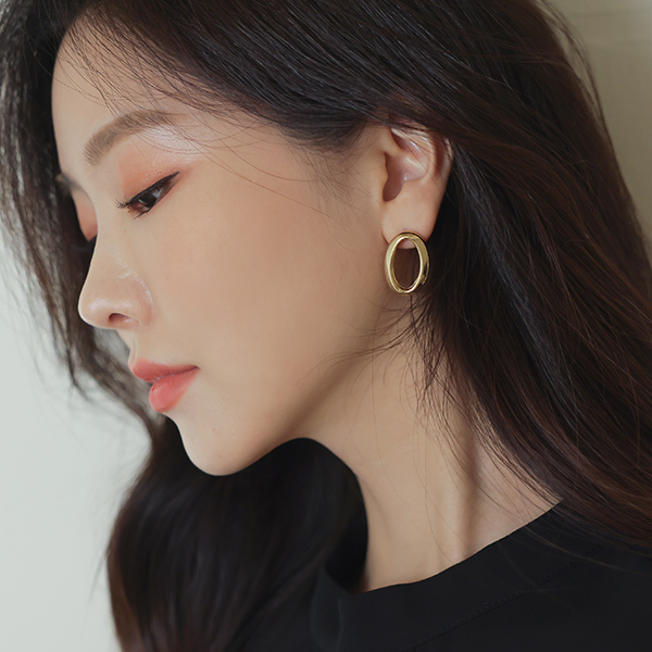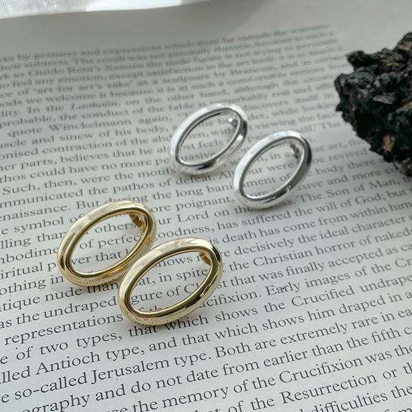 椭圆形 Silver&黄金 粗 耳环