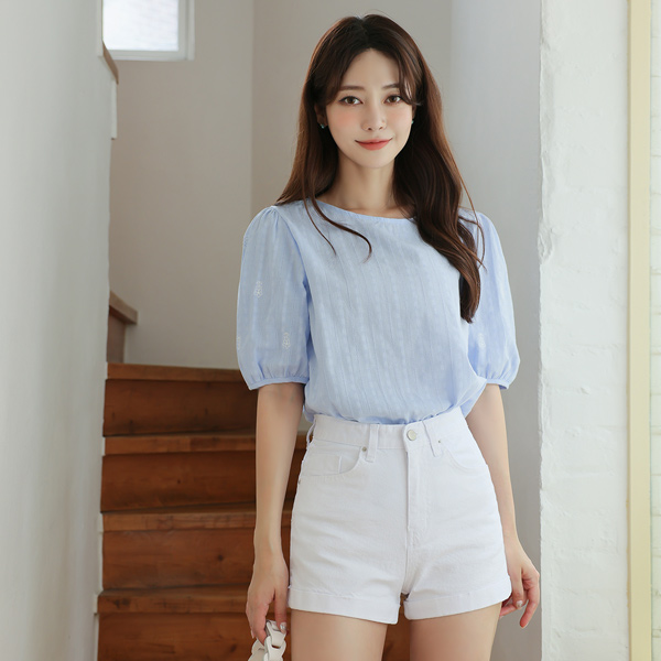 迷你 花绣 棉 印花 罩衫