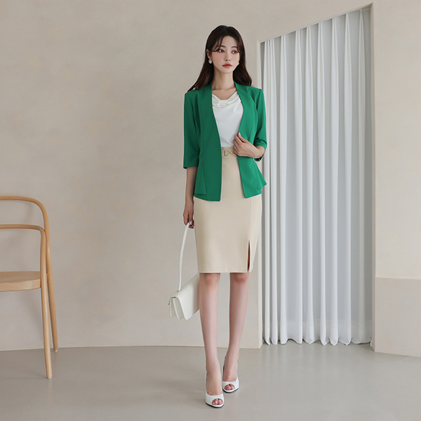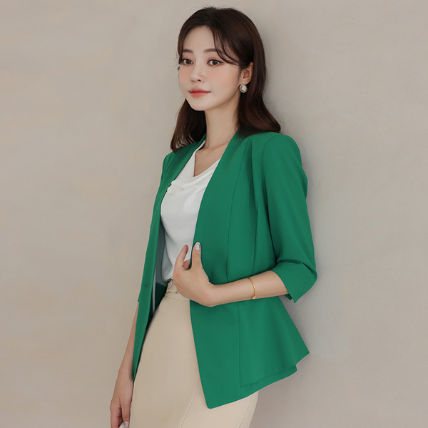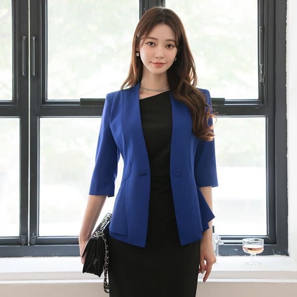 无领 开叉线条 双重荷叶边 夹克(summer)