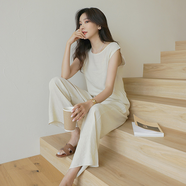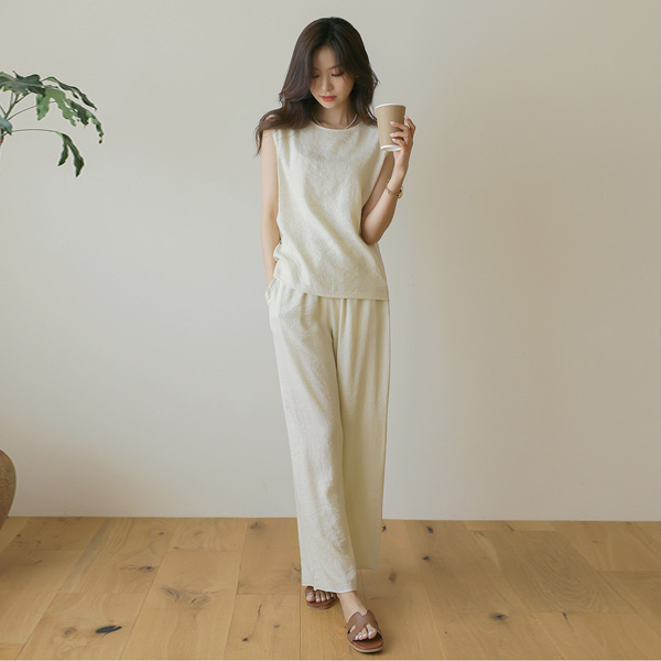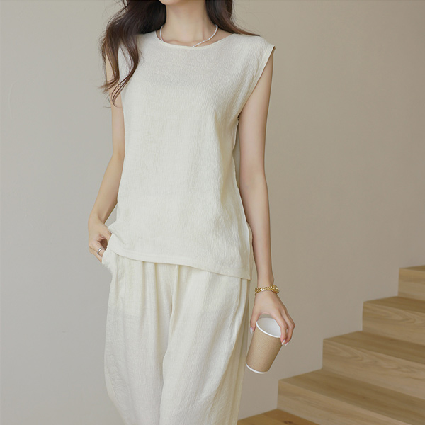 去皱纹 质地 舒服 罩衫&绑带裤 SET