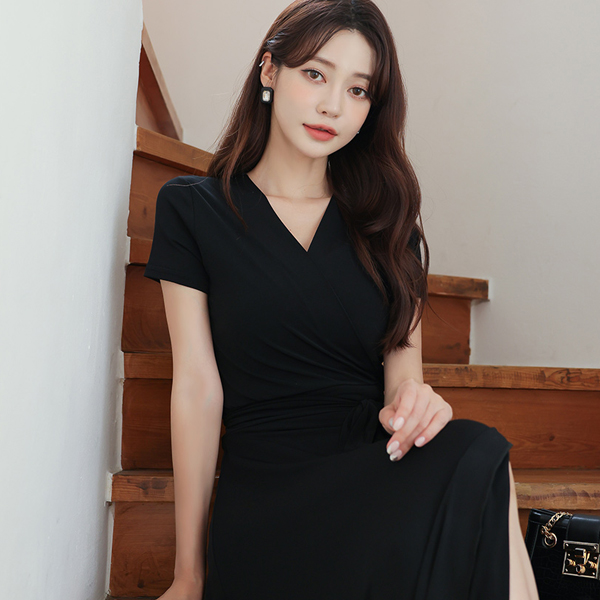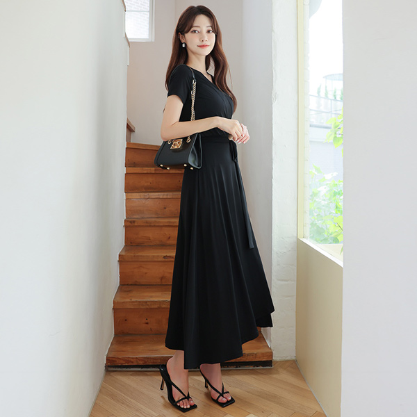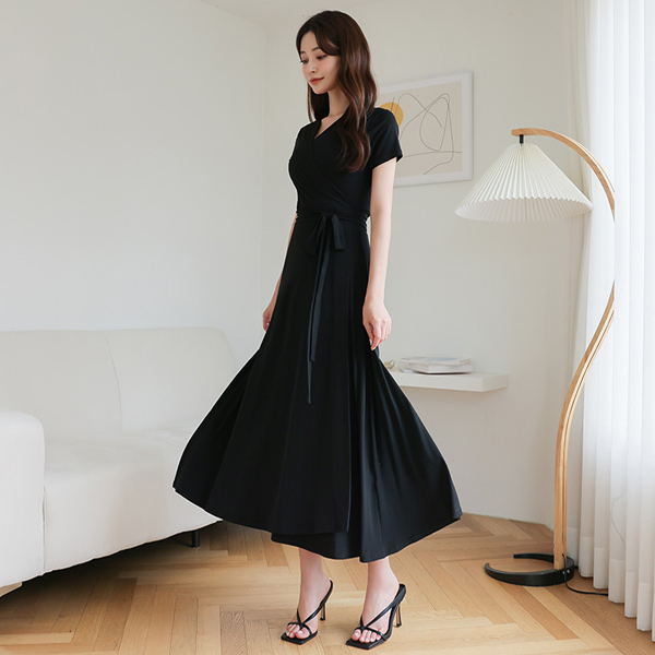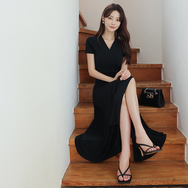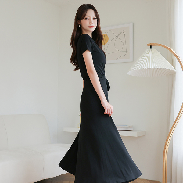 软绵绵 丝滑 弹力 裹身 喇叭 长款连衣裙