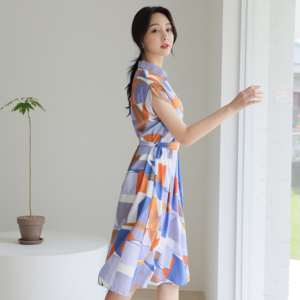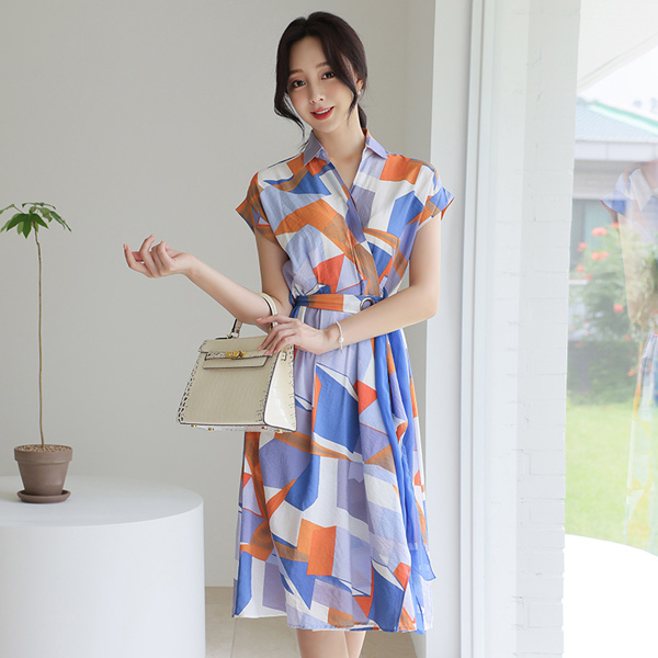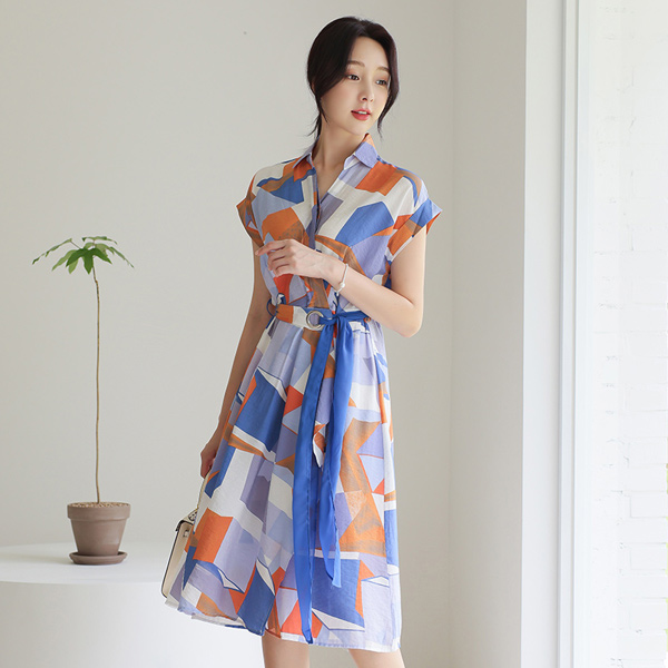 Juicy 块儿 配色 束带 衬衫 喇叭 连衣裙