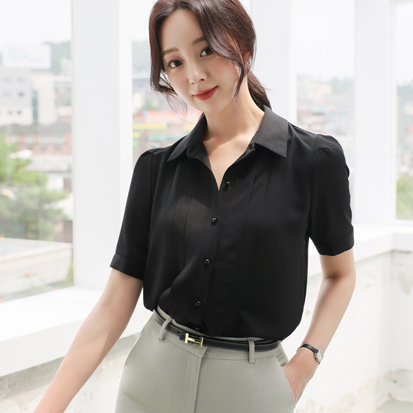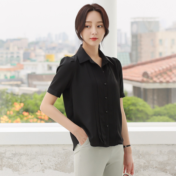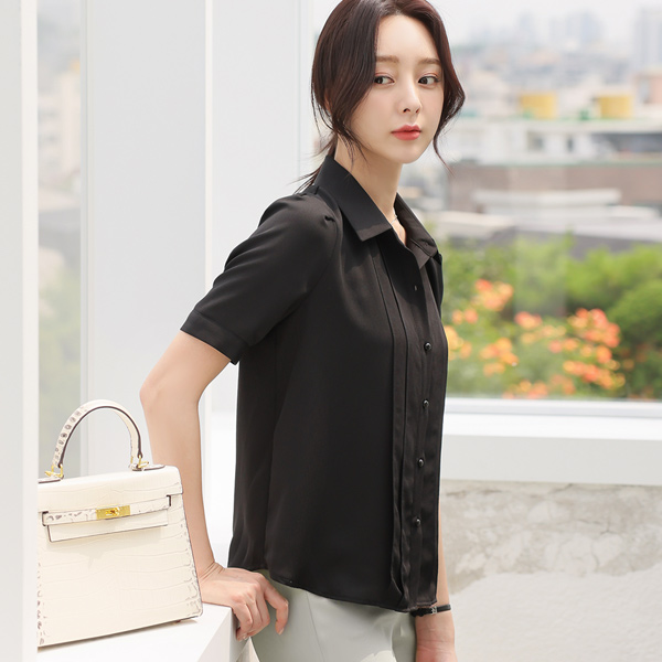 褶子雪纺 细褶 豆扣 领子 罩衫