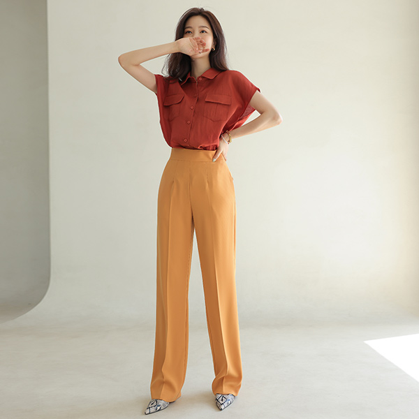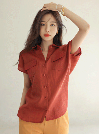 鲜明 颜色 帽檐袖 亚麻 罩衫