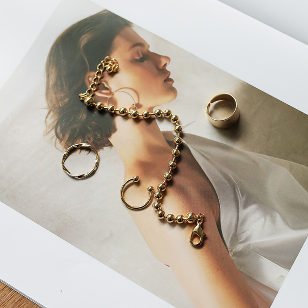 奢华裙 黄金 球形链 镯子&戒指 SET