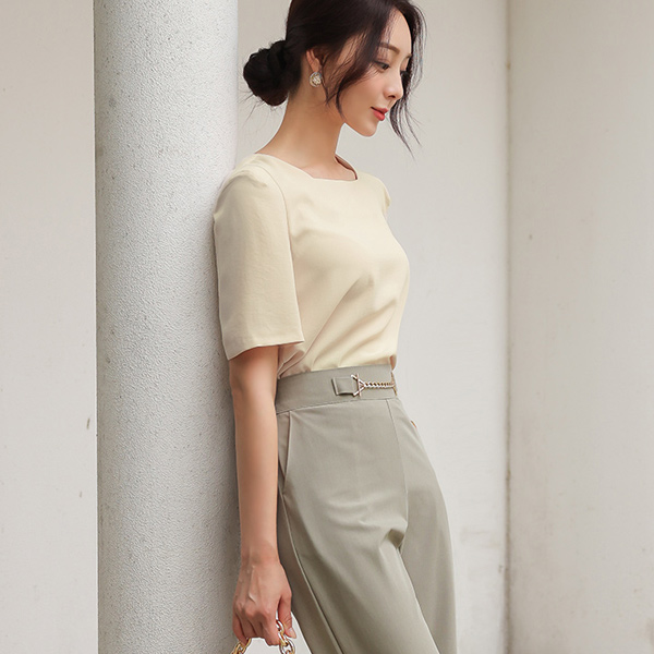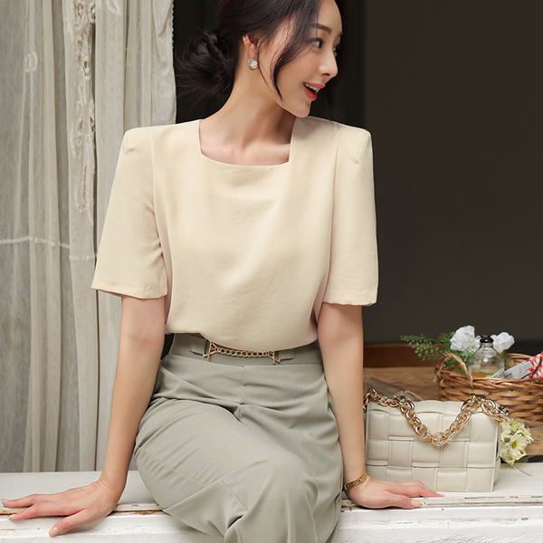 方领 肩垫 罩衫