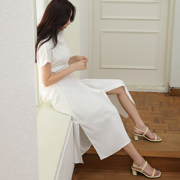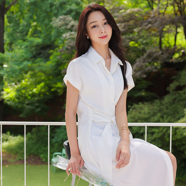 衬衫 蝴蝶结 侧纽 开衩 连衣裙