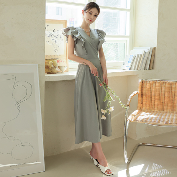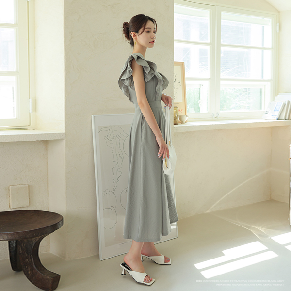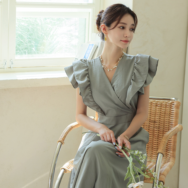 浪漫史 褶裥 层褶裙 长款 喇叭 连衣裙