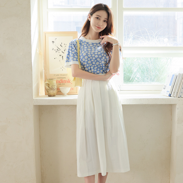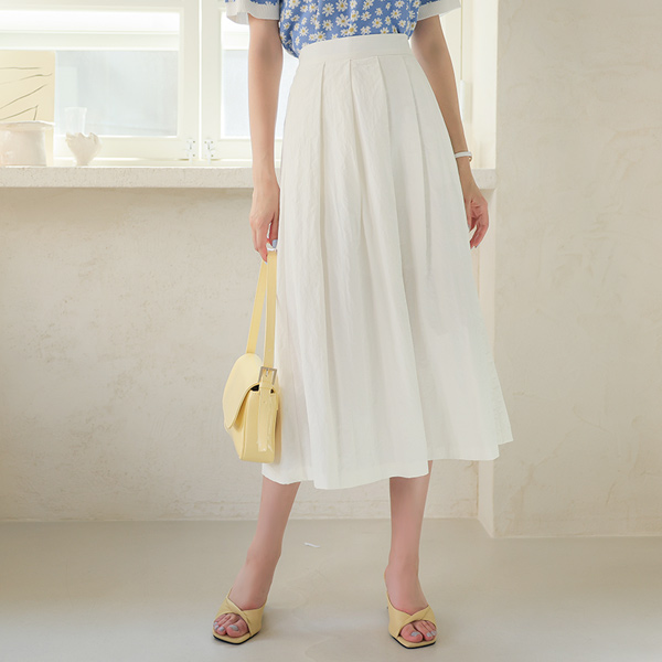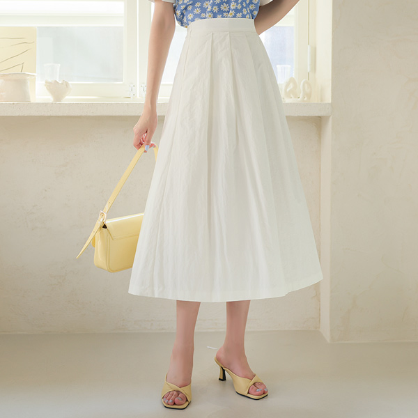 先知 尼龙 后侧松紧带 细褶 喇叭 裙子