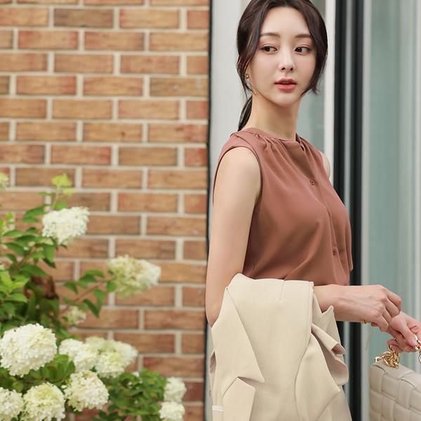 半开 立领 褶皱 背心/打底衫 罩衫