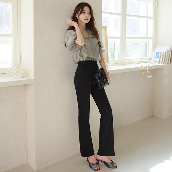光泽 丝滑 平领 灯笼 罩衫