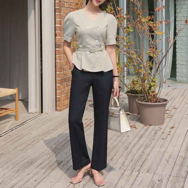 细纹 基本 凉爽 喇叭 宽松长裤