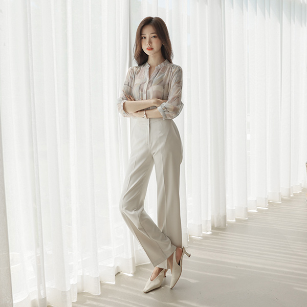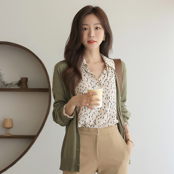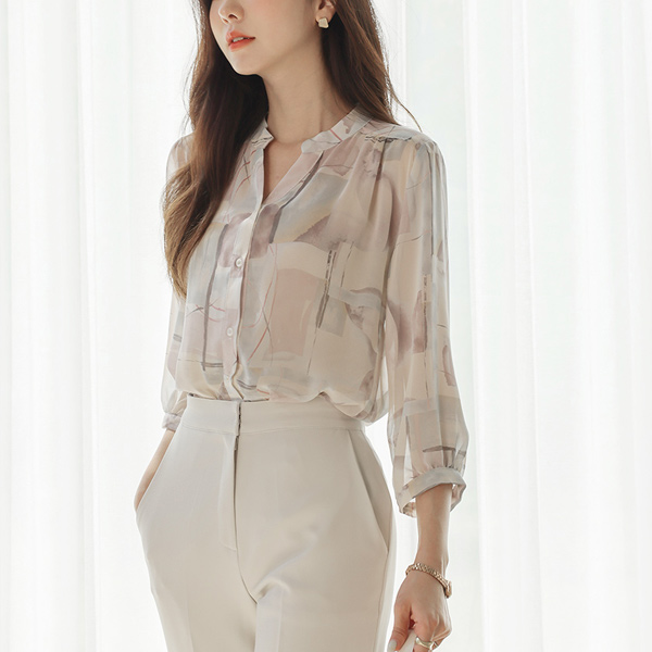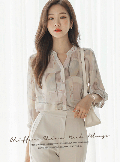 柔丝 印染 雪纺 立领 罩衫