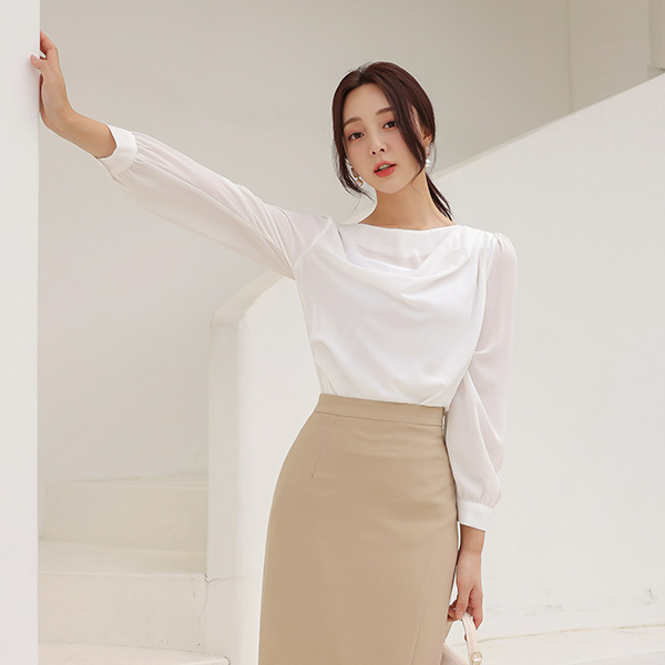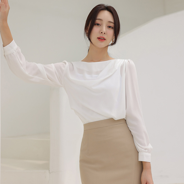 纯正 悬垂式 褶皱 堆领 罩衫