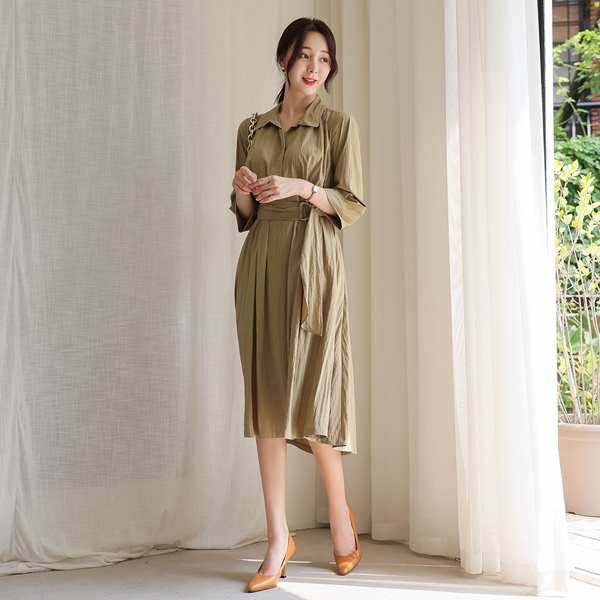 去皱纹 褶皱 束带 衬衫 喇叭 连衣裙
