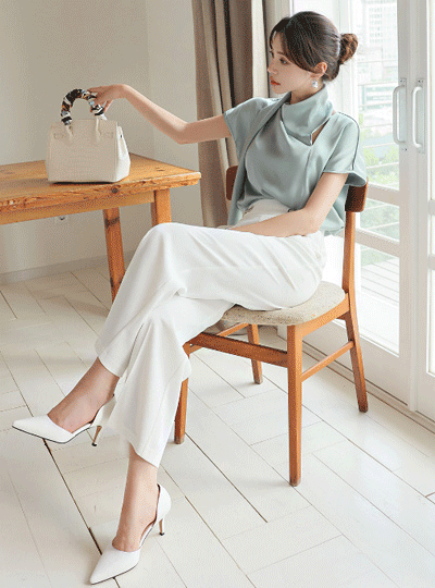 帽檐袖 开叉 不规则 围巾 缎子 罩衫