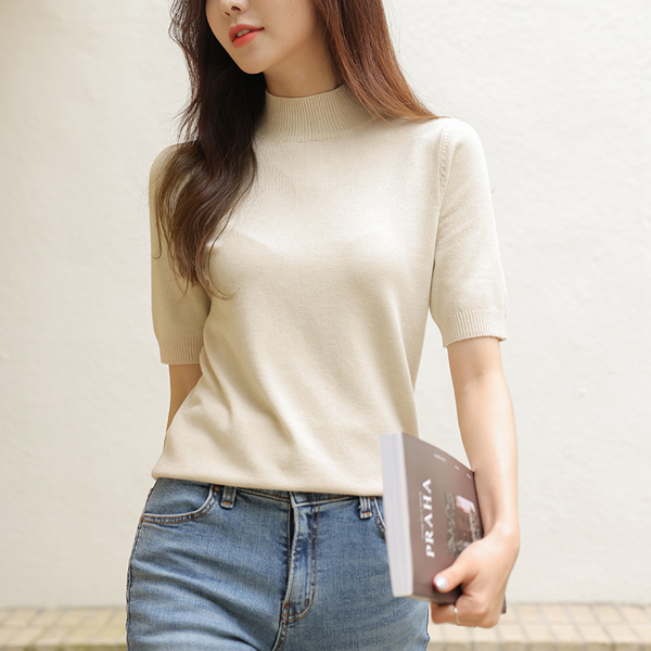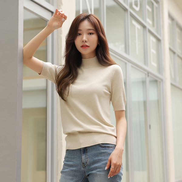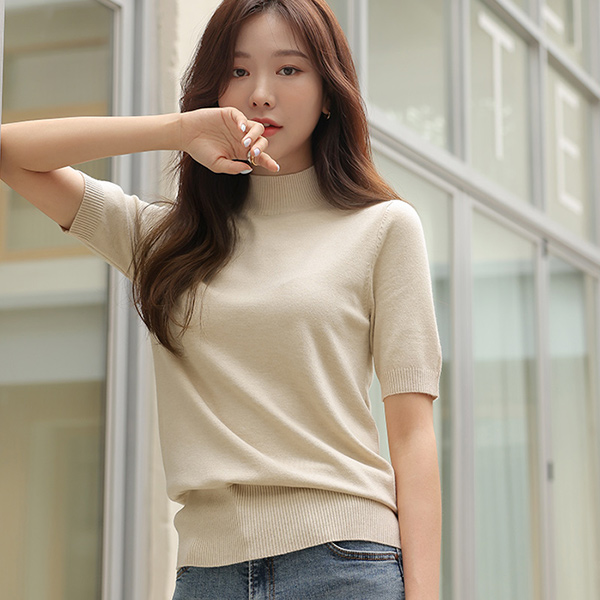 半高腰 基本 柔丝 亚麻材质 针织衫