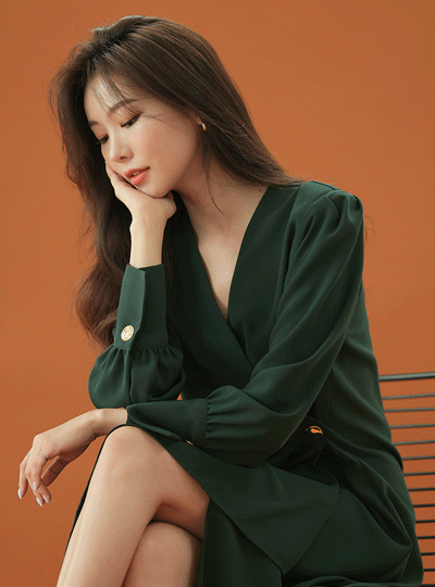灯笼袖 金色纽扣 女神 连衣裙