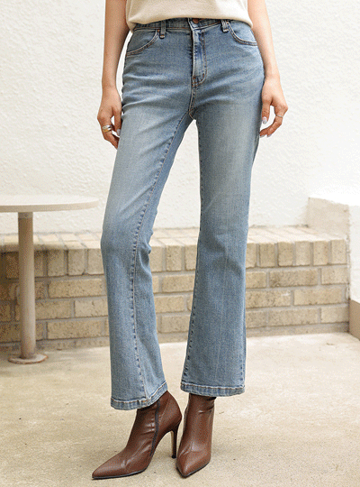 细密 里面松紧带 休闲风格 喇叭 牛仔裤