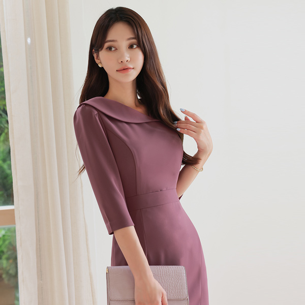 不规则 圆形 平底鞋 领子 弹力 连衣裙