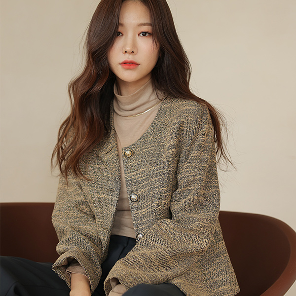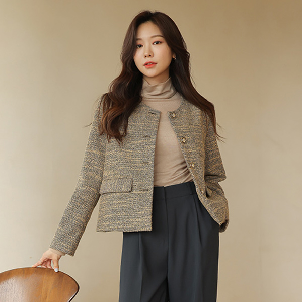奢华裙 金色纽扣 配色 粗呢 夹克