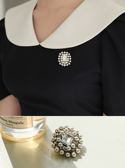 方形 珍珠&镶钻 胸针