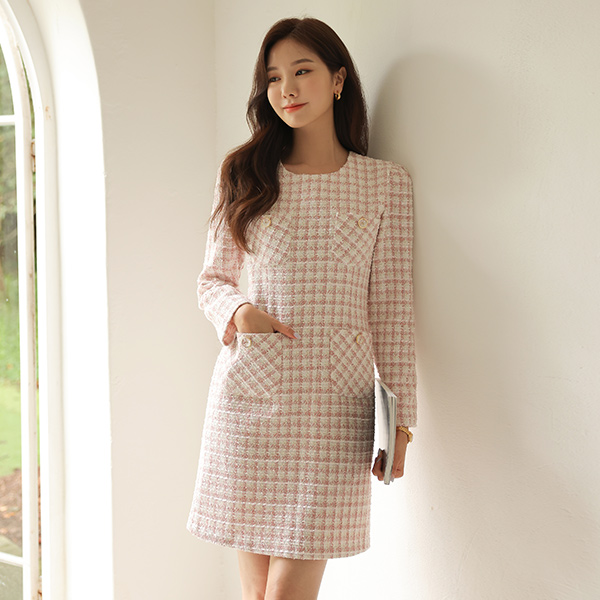 浪漫 粗呢 口袋 连衣裙