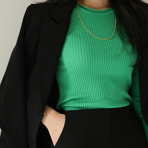 自然 롤 네크라인 条绒 针织t恤