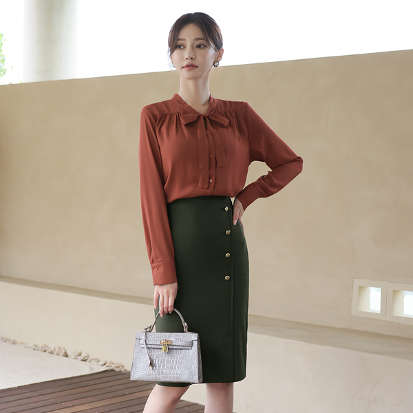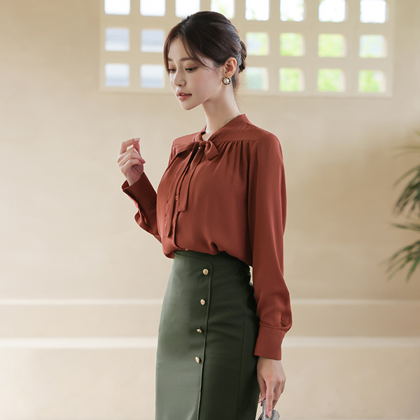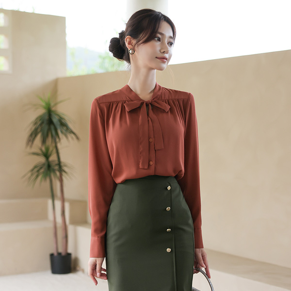 Brick 皱裥打褶 开口领子 蝴蝶结领结 罩衫