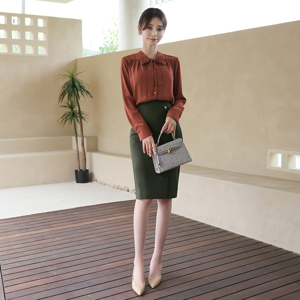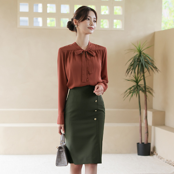 秋季 侧纽 开叉 金色纽扣 弹力 裙子