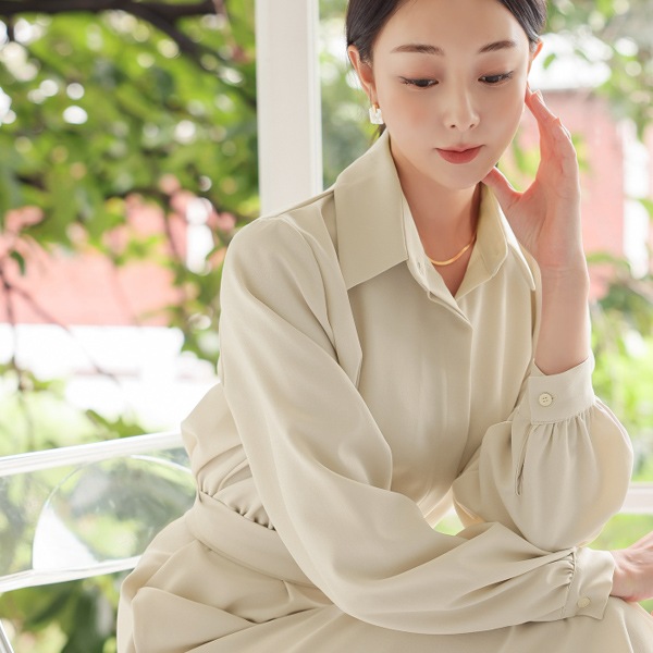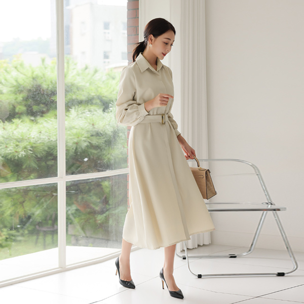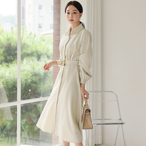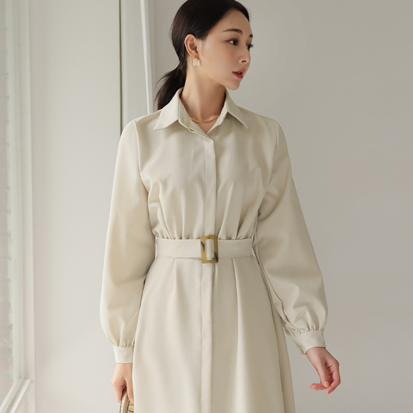 领子衬衫 暗扣 喇叭 连衣裙