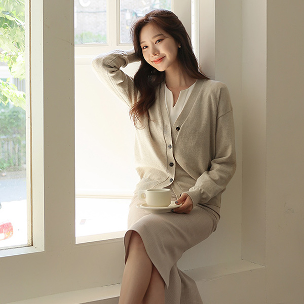 柔软的 基本 暖和 V字领 开衫