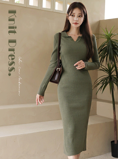 秋季 敝领 粗 条绒 长款 针织连衣裙