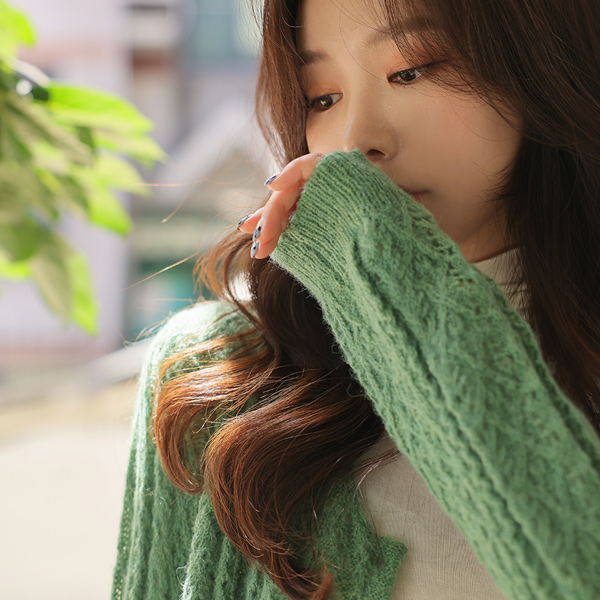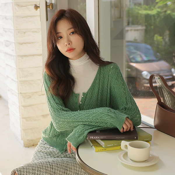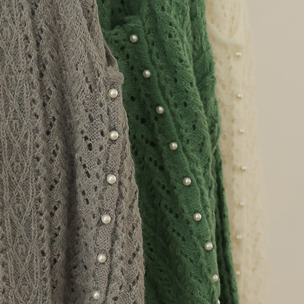 柔软的 珍珠 点缀 钻石纹 羊毛 开衫