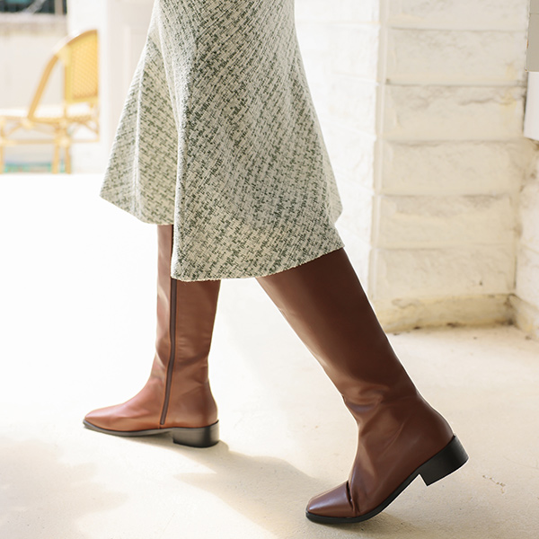 时尚 Square Toe 人造皮夹 长靴