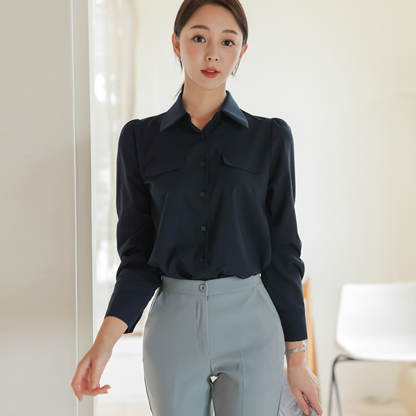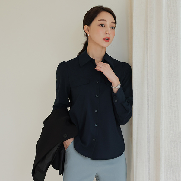 双 翻盖风格 装饰 基本 衬衫 罩衫