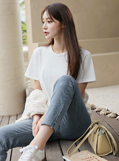 四季 基本 斯利姆 直筒 牛仔裤