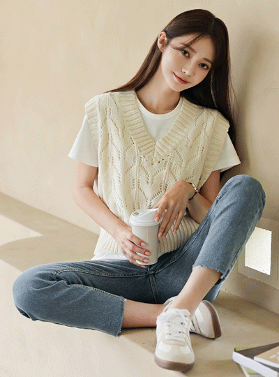 缆绳 印花 V字领 针织衫 马甲
