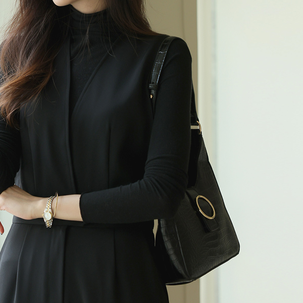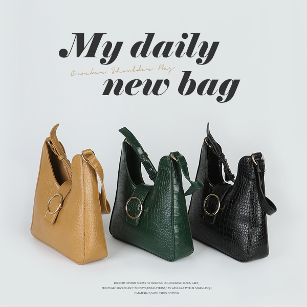 黄金环 点缀 鳄鱼纹 肩包
