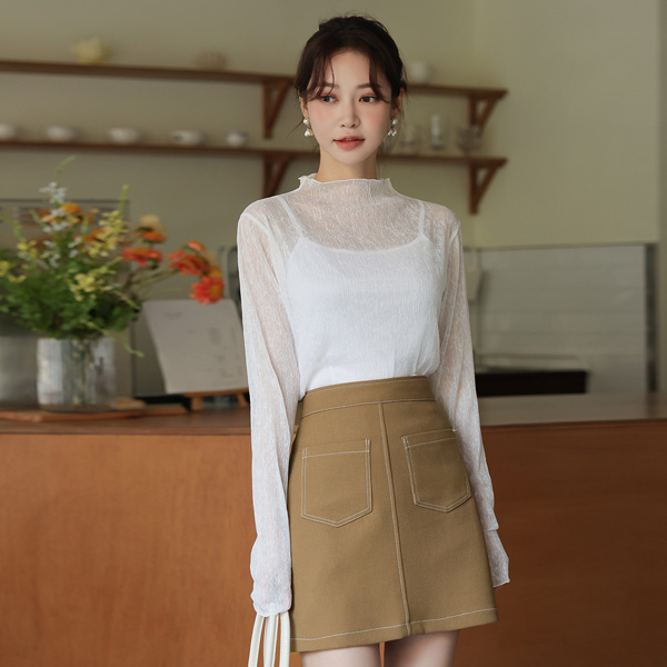 去皱纹 褶边 透视 内搭 罩衫
