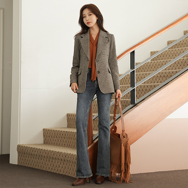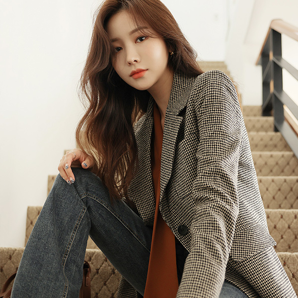 Pauline 格子 图案 腰带 (套装) 羊毛 夹克