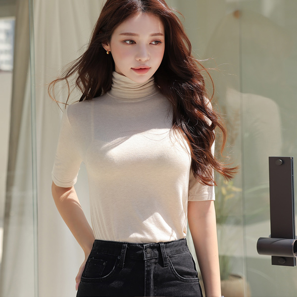 软绵绵 天丝 5分袖 日常 高领T恤