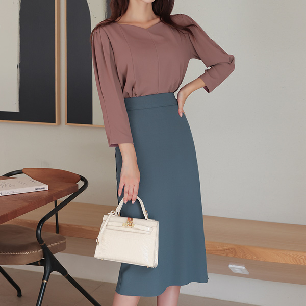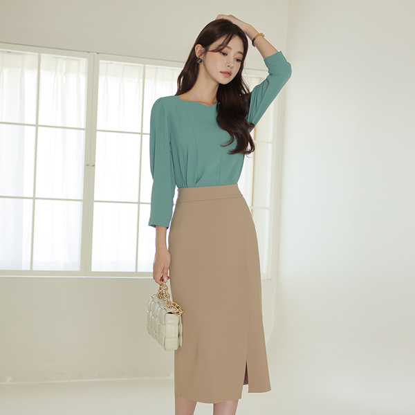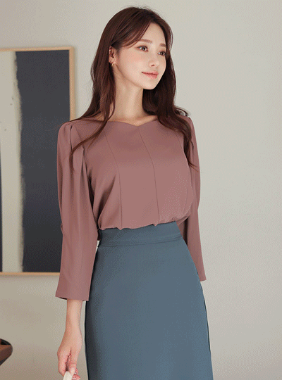 ODE 袖子细褶 心形领 开叉 罩衫