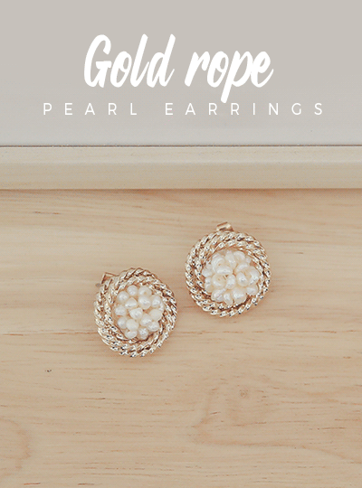 Gold 缆绳 淡水珍珠 耳环