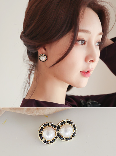 Black 플라워라인 淡水珍珠 耳环