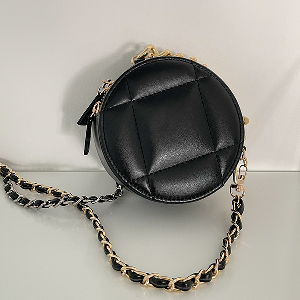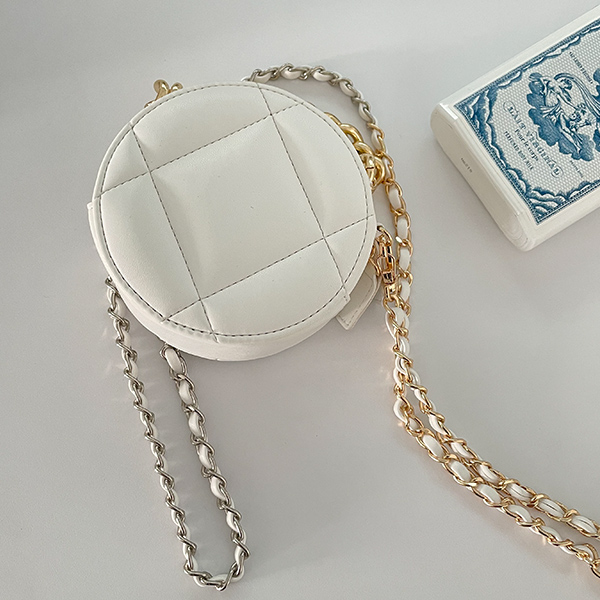 迷你 圆形 绗缝 链条 斜挎包